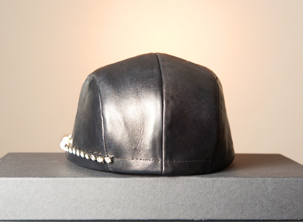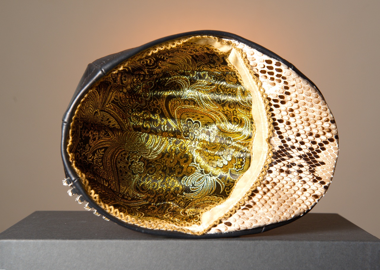 Gorra de auténtico Cuero Negro y Visera de auténtica Serpiente Piton /Genuine black leather hat and visor genuine python snake